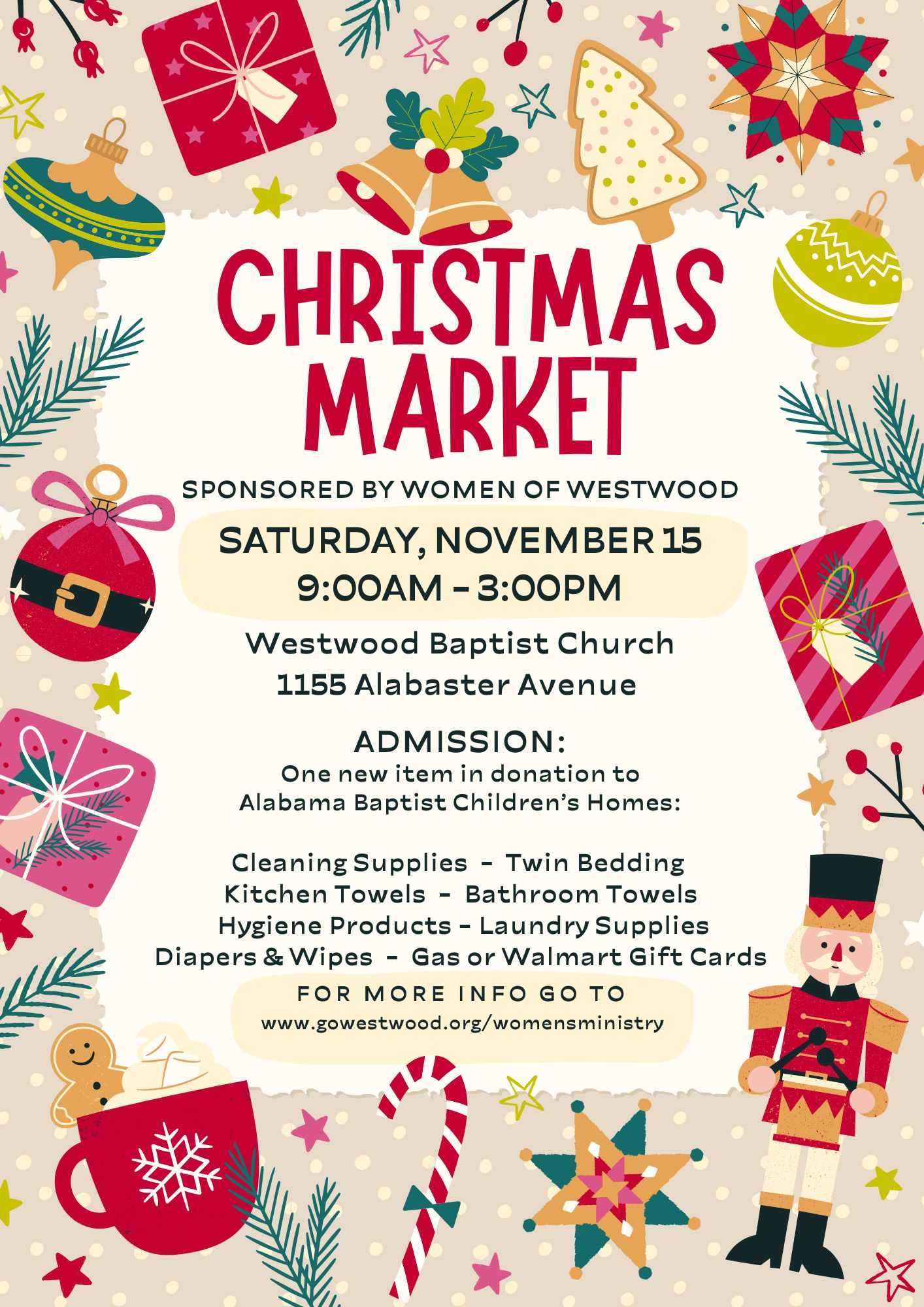 Women's Christmas Market to Benefit Alabama Baptist Children's Homes, Saturday, November 15, 2025